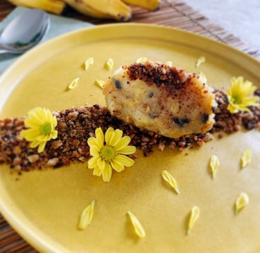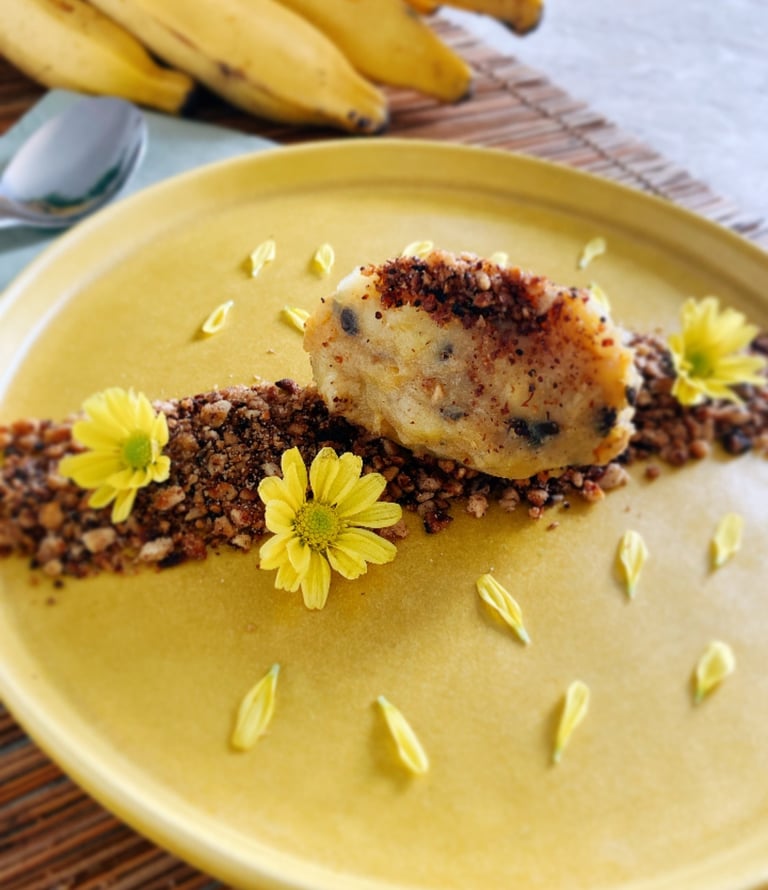 Corte as bananas em rodelas. Em um frigideira, derreta o ghee e adicione as bananas. Deixe cozinhar por 2 minutos. Junte a polpa do maracujá e o açúcar. Caso necessário, pingue um pouco de água. Cozinhe por mais 3 minutos e desligue o fogo.